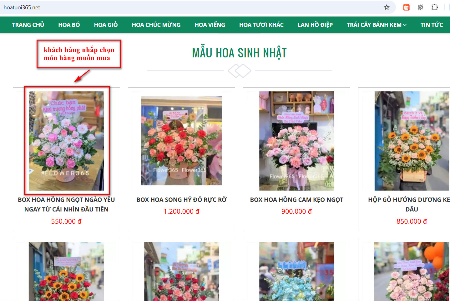 Bước 1: Khách hàng lựa chọn mặt hàng khách hàng mong muốn