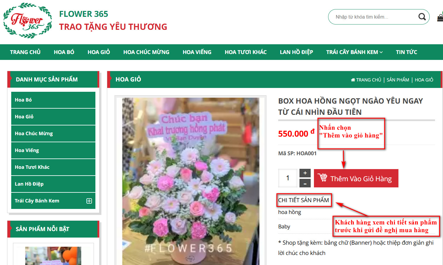 Bước 2: Khách hàng tìm hiểu thông tin của món hàng khách hàng đặt mua.